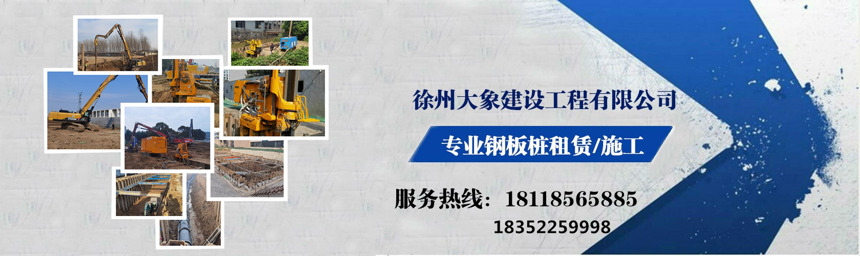 徐州大象建設工程有限公司是一家專業從事拉森鋼板樁施工及租賃、打樁機施工及租賃、靜壓植樁機施工租賃及設計施工方案、二手鋼板樁轉讓、鋼板樁工程、光伏樁施工、市政工程、水利圍堰工程、土石方工程、地基工程施工等服務為一體的企業。